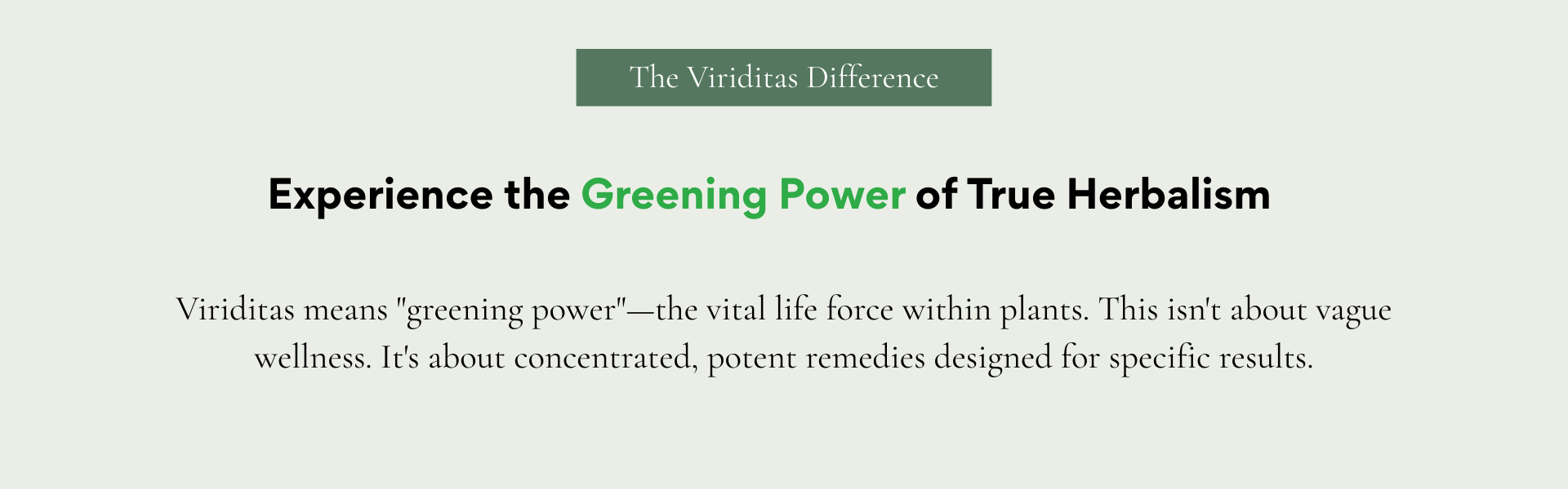 Small-batch production ensures every remedy preserves the vital "greening power" of the plant.